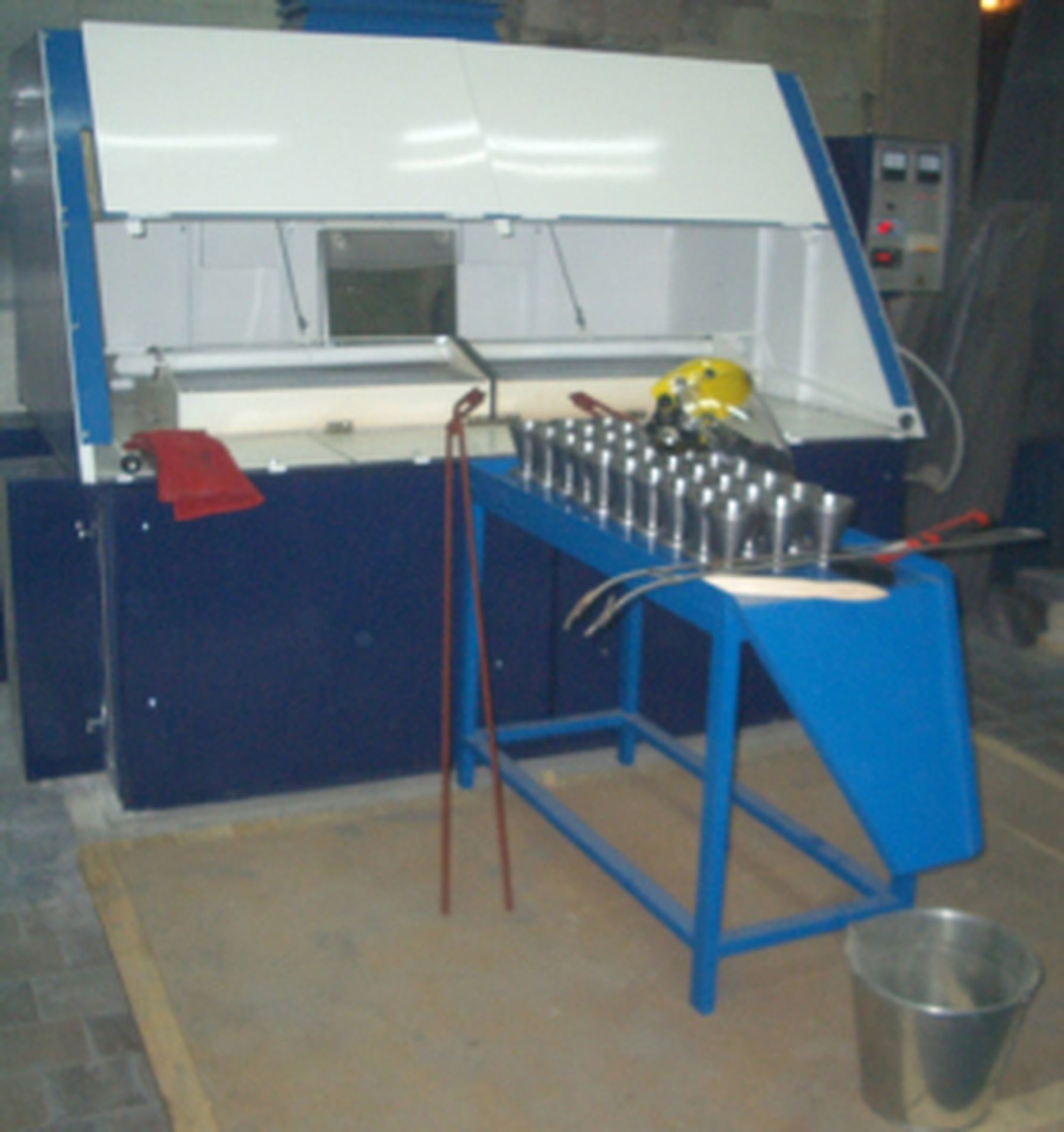 Электропечь проточная шахтная тигельная на 30 тиглей объемом 0,75 л предназначена для плавки проб в массовом производстве пробирных анализов минерального сырья, концентратов, промпродуктов и хвостов технологических производств, с целью пробирного концентрирования золота, серебра и металлов платиновой группы из проб в различные коллекторы — свинец, медь, олово, штейны для определения благородных металлов пробирно-инструментальными методами
