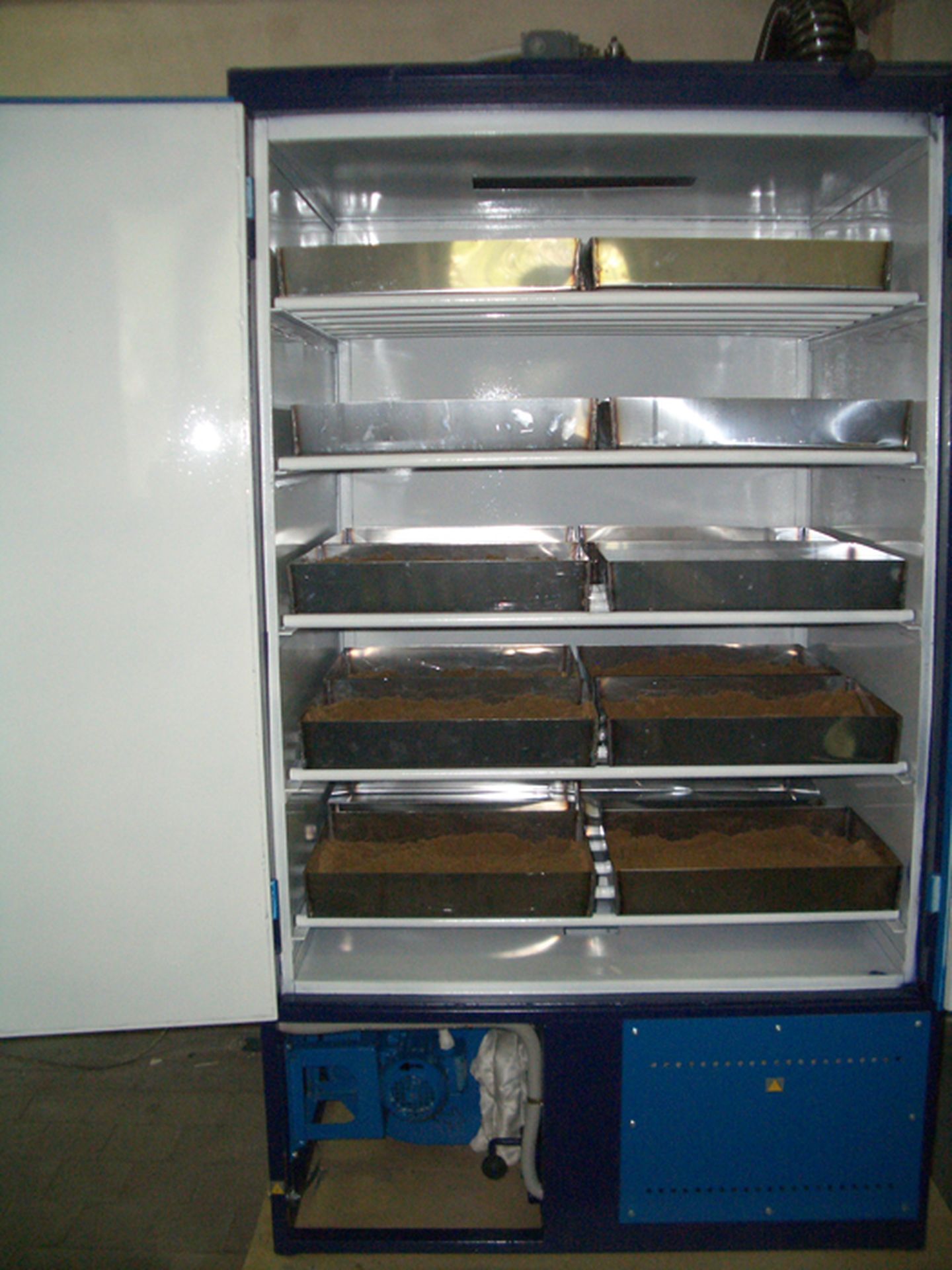 Электрошкаф для сушки проб с рециркуляцией воздуха предназначен для сушки влажного сырья (проб, промпродуктов, шламов и т. п.) при окислительной атмосфере при температуре 110 ℃. Пробы сушатся в стандартных оцинкованных или нержавеющих противнях с размерами 350x475x80 мм. Противни заказываются отдельно
